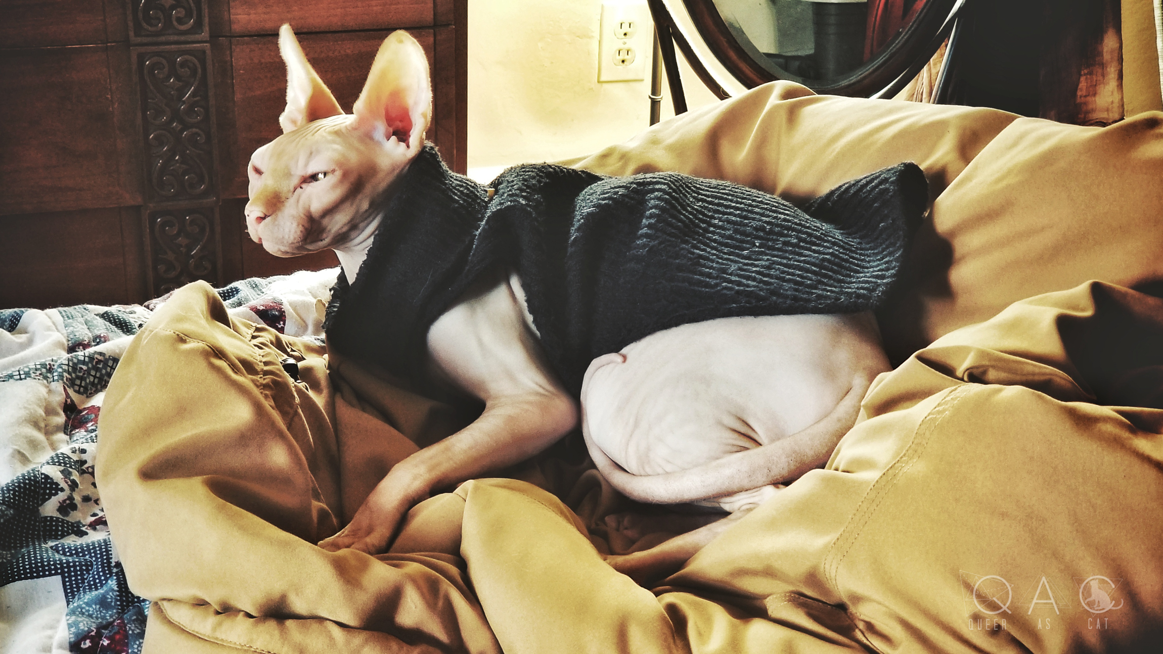 thankfully Calcifer survived the flight without incident and, in fact, seems to be thriving in this new environment, needing even less time to adjust than me. yet more proof to substantiate the stereotype that sphynxes have as much in common with dogs and monkies as they do cats. then again, i suppose having a new playmate and living ‘toys’ in the form of squirrels on the other side of windows helps him make peace with living somewhere new.